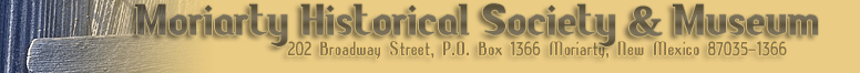 Introduction... The Moriarty Historical Society is a 501(C)(3) organization located in Moriarty, New Mexico. It was established on March 28, 1974 to provide a central repository of objects and information that demonstrates the historic role played by Moriarty and the surrounding area in the occupation of this portion of the Estancia Valley, New Mexico.